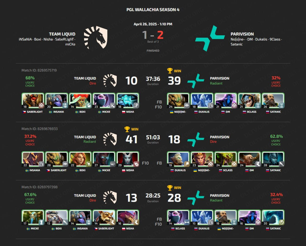 Team Liquid took on PARIVISION for a spot in the Grand Final. Historically, the latter has won seven matches in a row, starting from ESL One Bangkok 2024. After PARIVISION took a convincing first game, Team Liquid bounced back after putting down Satanic’s Phantom Assassin, who committed to a Divine Rapier, keeping the series level.