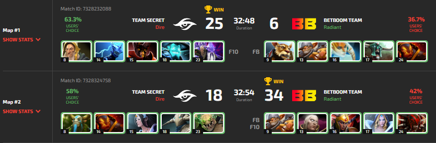 However, the BetBoom Team realized their mistake and didn't give SumaiL an excellent draft to work around. Being one of the top competitors in the tournament, the BetBoom Team showed their potential and stomped Secret in the second game. Gpk had a great showing on his Invoker with 91% kill participation, allowing Nightfall's Bloodseeker to farm freely and help the team end the game.
