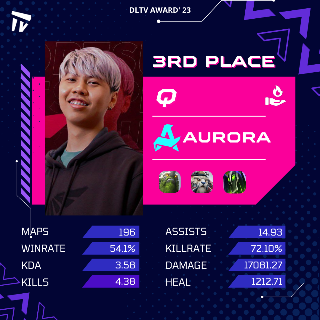 Hailing from Southeast Asia, ex-Talon Esports player, now in Team Aurora, Q, will take the bronze medal in our list of best position four players. Though the team’s results weren’t too impressive, Q’s individual performance surpassed many players from more substantial teams and deserved third place.