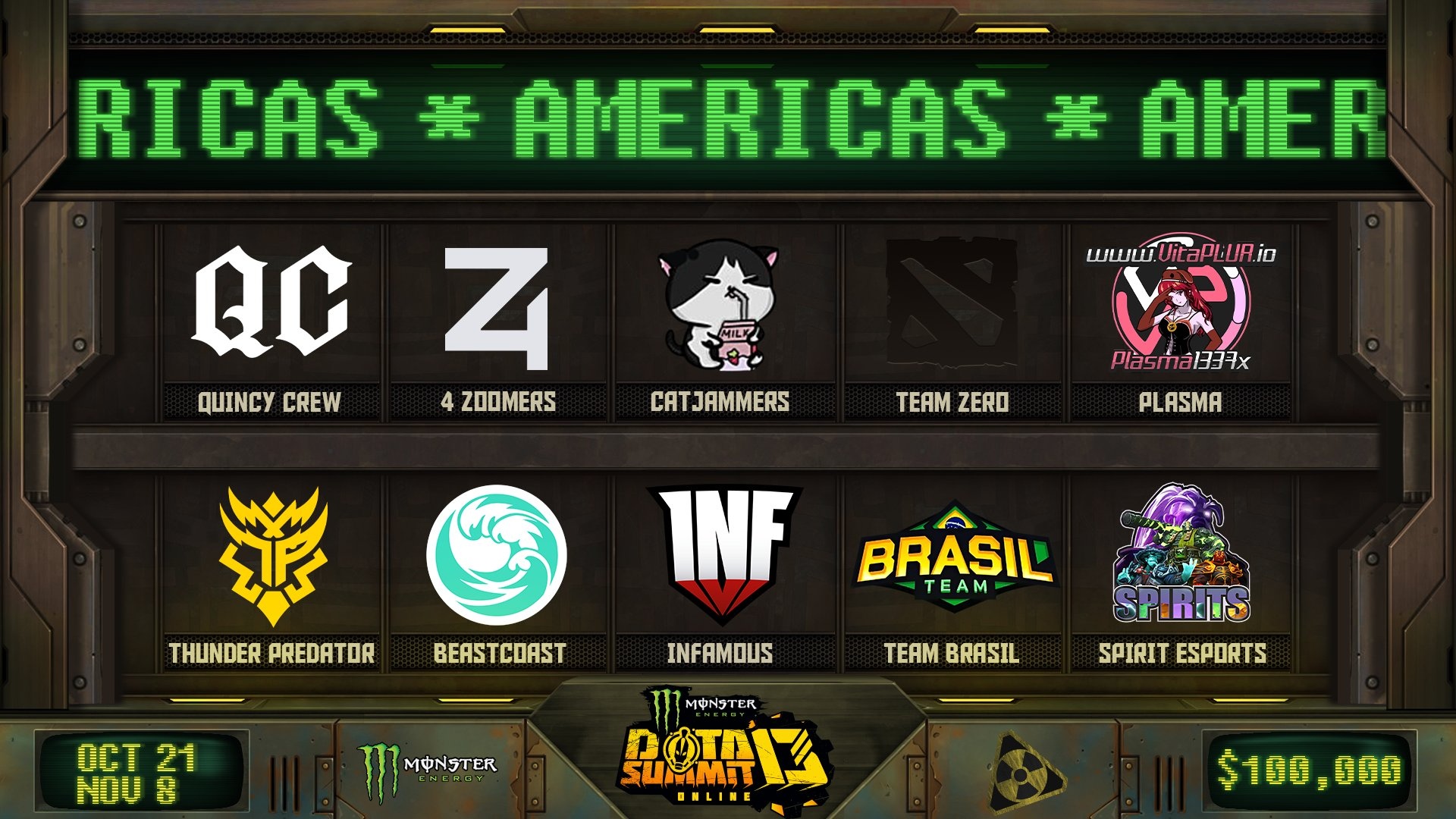 Ten teams from the American region, eight of which received direct invitations and two passed qualifications, will play for a $100,000 prize pool. The group stage will run from October 21 to November 2, while the playoffs will run from November 4 to 8.