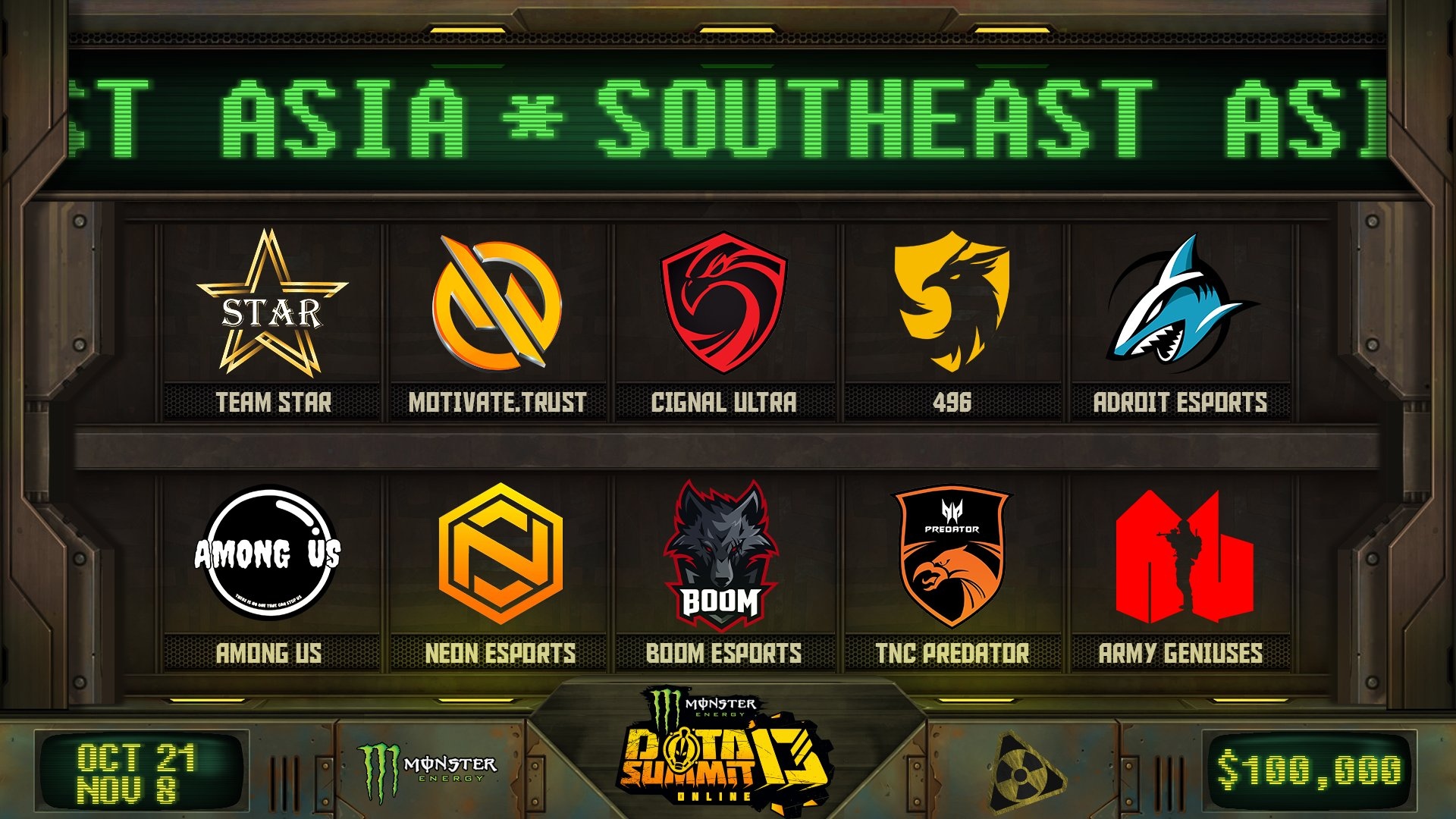 Ten teams from the Asian region, eight of which received direct invitations and two passed qualifications, will play for a $100,000 prize pool. The group stage will run from October 21 to November 2, while the playoffs will run from November 4 to 8.