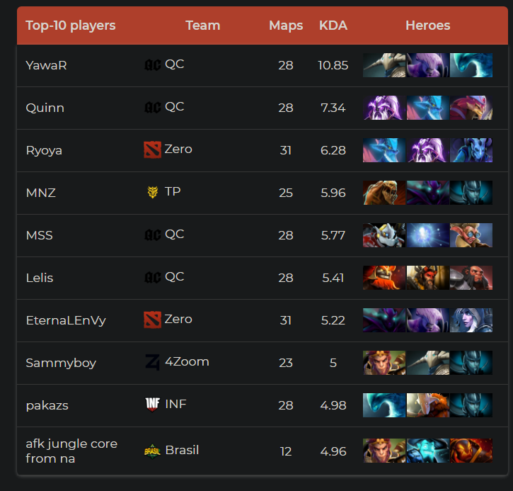 Несмотря на проигрыш в гранд финале, в списке игроков с наивысшим KDA находятся сразу 4 игрока ??Quincy Crew.