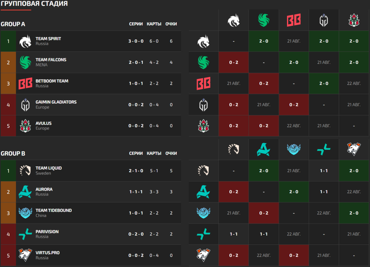 ไม่ใช่ทุกคนที่มีผลงานราบรื่นเหมือน Team Spirit. Virtus.pro, ที่ผ่านเข้ามาใน FISSURE Universe: Episode 6 ผ่านรอบ Play-In, ยังไม่สามารถชนะได้แม้แต่แผนที่เดียวจากสี่แผนที่. ขอเตือนว่า, ในตำแหน่งที่ห้าของ Virtus.pro มี Puppey เข้าร่วมชั่วคราว.