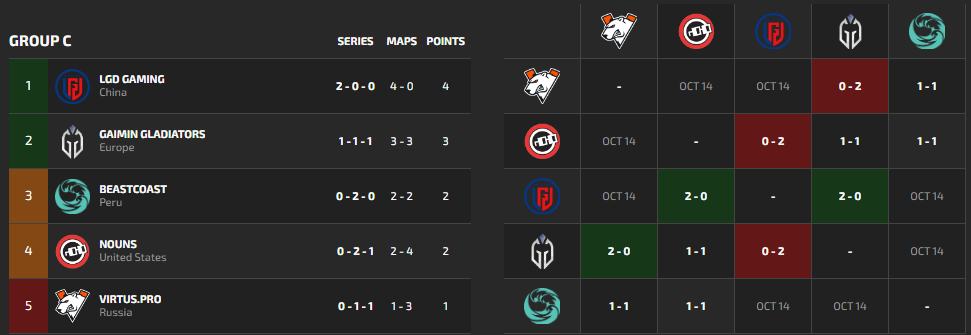 Beastcoast, Nouns, and Virtus.Pro are sitting at the bottom of the group, and the gap between the three teams is small. However, Beastcoast only has tough opponents remaining in the form of the Gaimin Gladiators and LGD Gaming. Can they make it out alive?